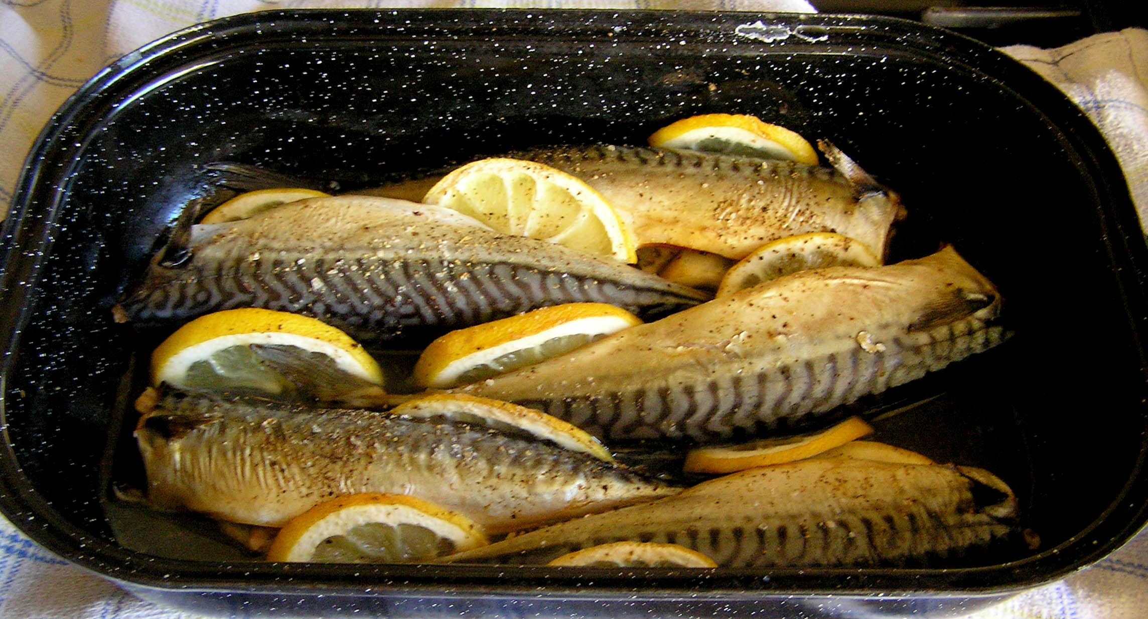 - Caballa al horno. Para completar las proteínas baratas, vamos a preparar un exquisito pescado al horno. Al comprar la caballa, hay que pedirle al pescadero que la limpie para hacerla al horno. Te la pueden dejar entera y limpia, o en filetes, da lo mismo. Si te la vas a llevar al trabajo en tupper, mejor que te la deje en filetes. Se prepara de la siguiente manera: hay que freir ligeramente un par de patatas medianas, en lonchas muy finas. Cuando ya estén un poco doradas, se sacan de la sartén y se extienden por la fuente que vamos a usar para hacer la caballa en el horno. El horno ha de estar previamente calentado a unos 175º y cerrado, esperando la llegada del pescado. Una vez colocadas las patatas, sitúa encima la caballa, a la que le has hecho unas ranuras y le has puesto limón en rodajas, insertadas. Espolvorea algo de sal, y pimienta, incluso un poco de orégano o hinojo, riega con un poco de limón y un chorrito de aceite y métela en el horno caliente. Vigila que no se queme o se seque excesivamente y cómela caliente o fría. Un plato muy nutritivo y que te permitirá completar tus necesidades de proteínas. Puedes comerlo también con chukrut.